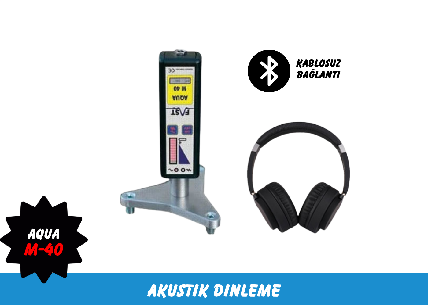Aqua M-40 boru veya tesisat üzerine yerleştirilir ve cihaz açılır. LED ekranda gösterilen değer ‘0’ değilse boruda/tesisatta muhtemelen sızıntı vardır. Bu gibi durumlarda kulaklıklar açılır ve kullanıcı, duyulan sesin mevcut bir boru çatlağından gelip gelmediğini kontrol eder.