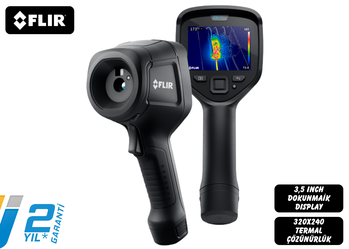 FLIR E8 PRO, profesyonel kullanıcılar için tasarlanmış, yüksek çözünürlük ve gelişmiş analiz özelliklerine sahip bir termal kameradır. 320×240 çözünürlük ve Super Resolution teknolojisiyle bu çözünürlük 640×480'e kadar çıkabilir, böylece daha net ve detaylı görüntüler elde edebilirsiniz. Bu model, –20°C ile +650°C arasındaki geniş sıcaklık ölçüm aralığına sahip olup, enerji verimliliği denetimlerinden elektriksel arıza tespitlerine kadar geniş bir uygulama yelpazesi sunar. Wi-Fi bağlantısı ve mobil cihazlarla uyumlu çalışarak veri kaydı ve analiz işlemlerini kolaylaştırır. Ayrıca, yüksek kaliteli termal görüntüler ve sıcaklık ölçümünü eş zamanlı olarak gösteren kullanıcı dostu ekranı ile her türlü profesyonel kullanım için idealdir.