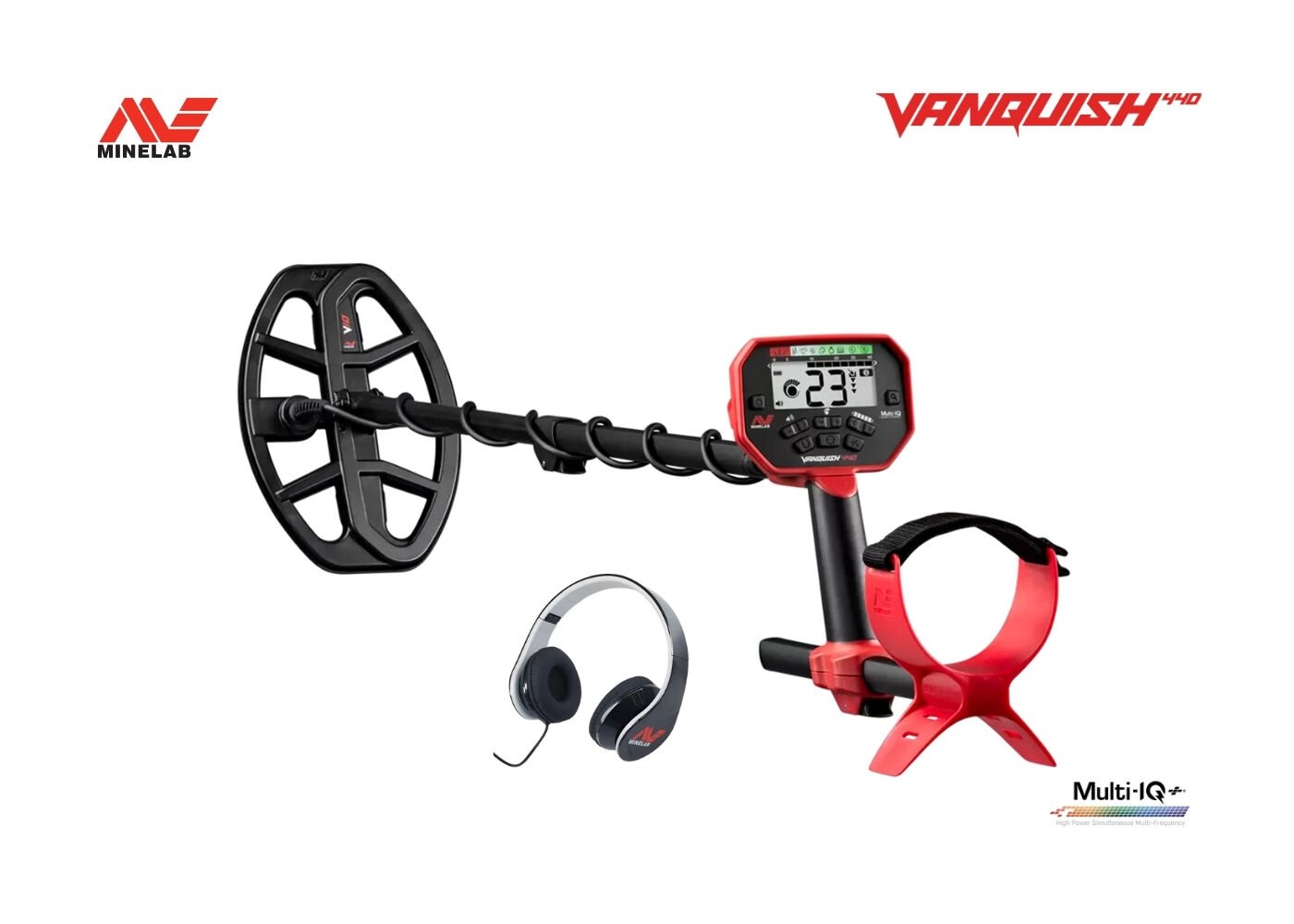 VANQUISH 440 modeli Multi-IQ teknolojisine, su geçirmez V10 (10”x7” - 25,5 cmx18 cm) DD arama başlığına , pinpointer (hedef merkezleme) ve ses kontrol özelliği ile standart olarak geliyor.